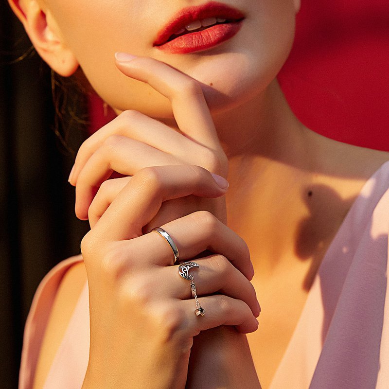 Where there is the moon, there are always stars asides.?Capture the beauty and charm of the?starry night with a delicate sterling silver moon star ring. Featuring dangle stars in sparkling?blue stones, the moon also has vibrant hollowed carved patterns.?Wear as?a reminder to keep true friendship in your day-to-day life.